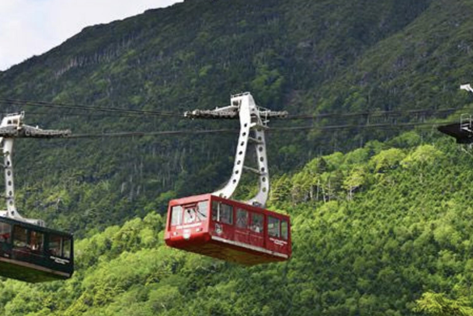 八ヶ岳の北端に位置する北横岳と縞枯山の間に架かる北八ヶ岳ロープウエイ。 山麓駅(標高1,771m)から山頂駅(同2,237m)までの高低差466mを 約7分で駆け上がります。