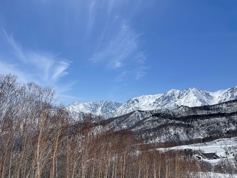 北アルプスを代表する白馬五竜、白馬八方尾根、栂池高原の白い山並みと青空を白馬から眺めては如何でしょうか。