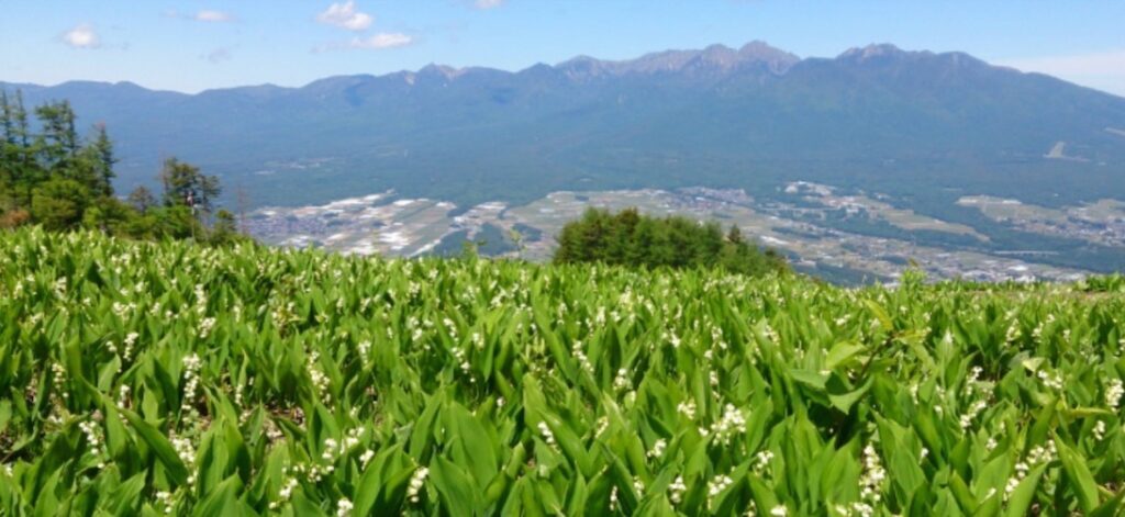 120万本のすずらんが可憐に白い花を咲かせる入笠すずらん山野草公園・入笠湿原では6月下旬まで鑑賞出来ます。