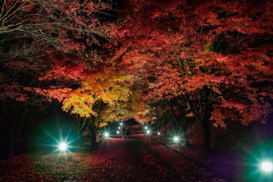 ライトアップされたもみじが幻想的なシーンを醸し出す夜のもみじロードを散策して信州の秋に癒されては如何でしょう。