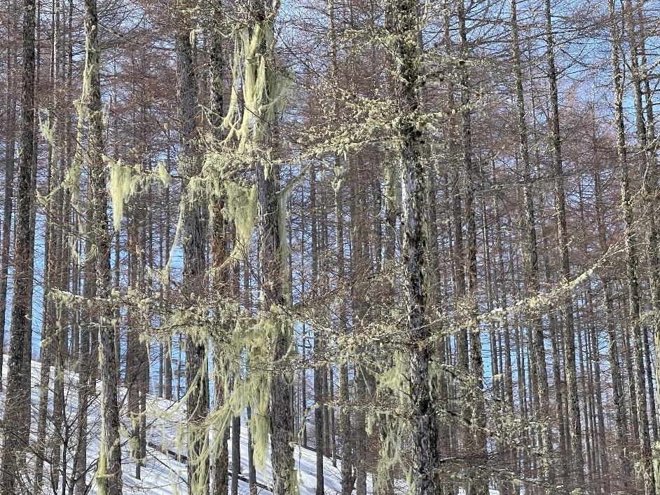 白樺高原国際スノーリゾートやブランシュたかやまスキーリゾートで見られるサルオガセ(猿尾枷、猿麻桛)は、「樹皮に付着して懸垂する糸状の地衣」(広辞苑)。