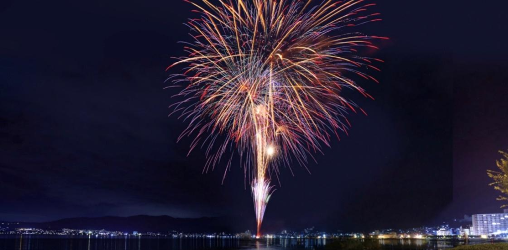 煙火師は従来の技術にとらわれず、思い描いたイメージ「コメント」に合わせて競い、2025年度の優勝者を決定する諏訪湖の「全国新作花火競技大会」をお楽しみください。